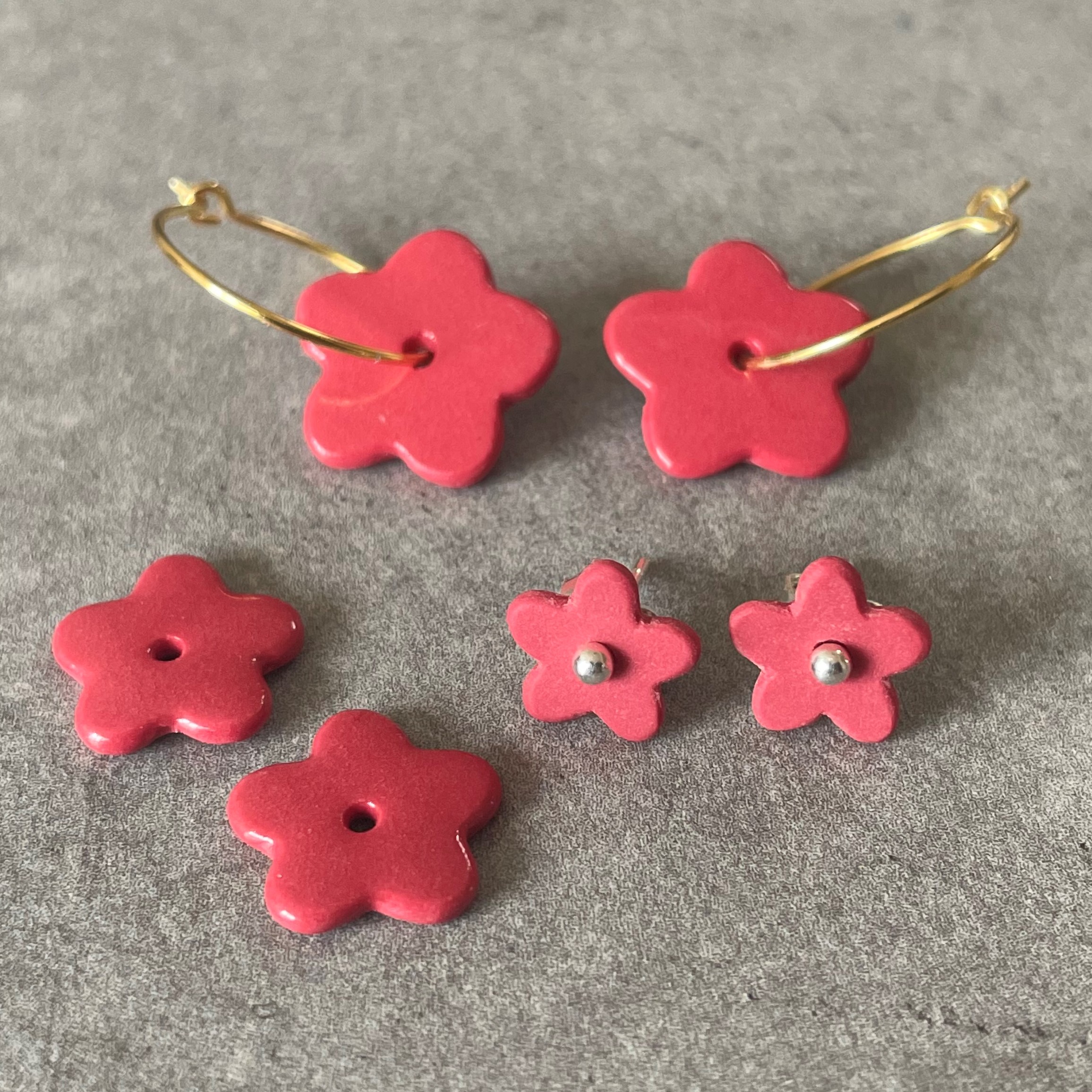 Perler til øreringe, rød (pris pr. sæt)